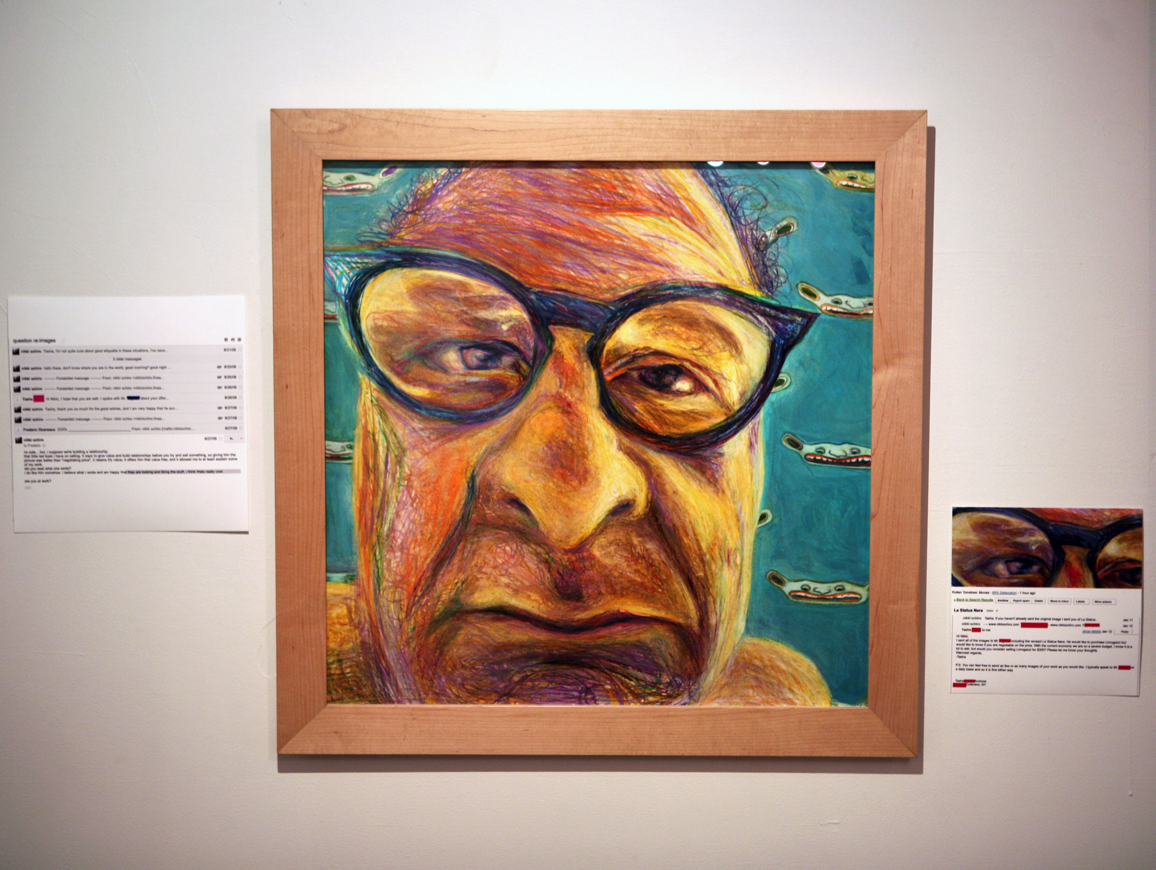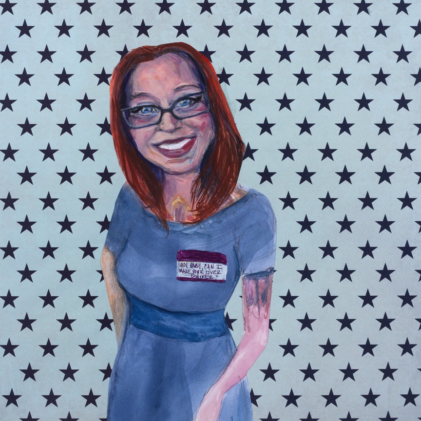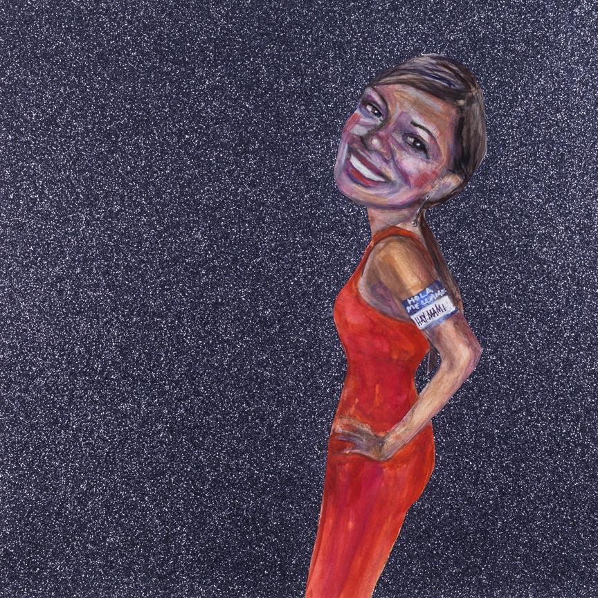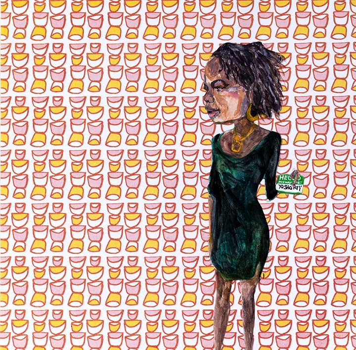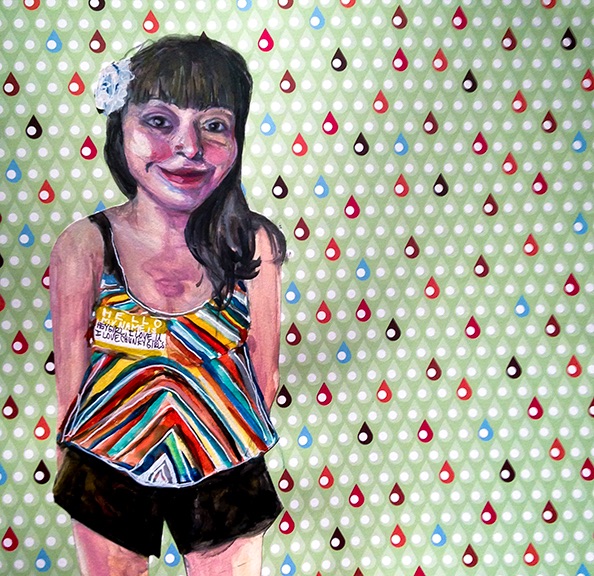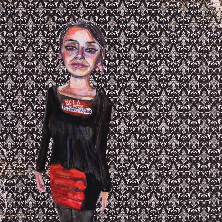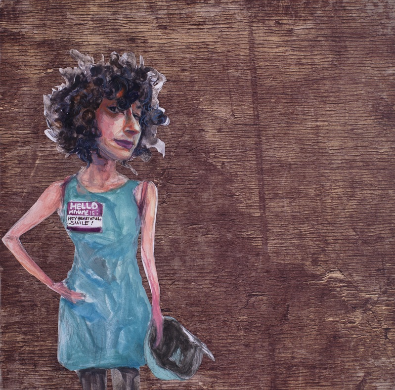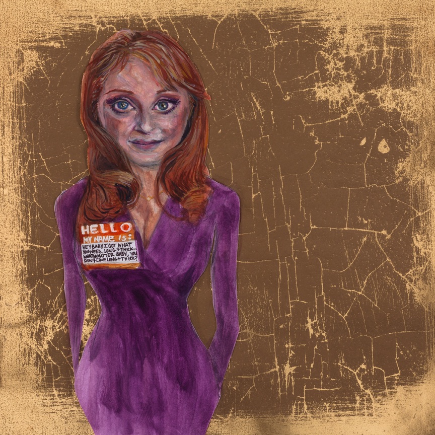 A portrait series dealing with street-harassment/catcalling. Women in my network sent me a photograph of themselves and their most “memorable” or “haunting” catcall (in whichever language it came to them in). I paint portraits of the women wearing a “Hello: My Name Is” tag, where the catcall replaces their name. 2013