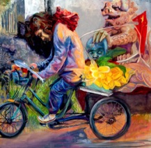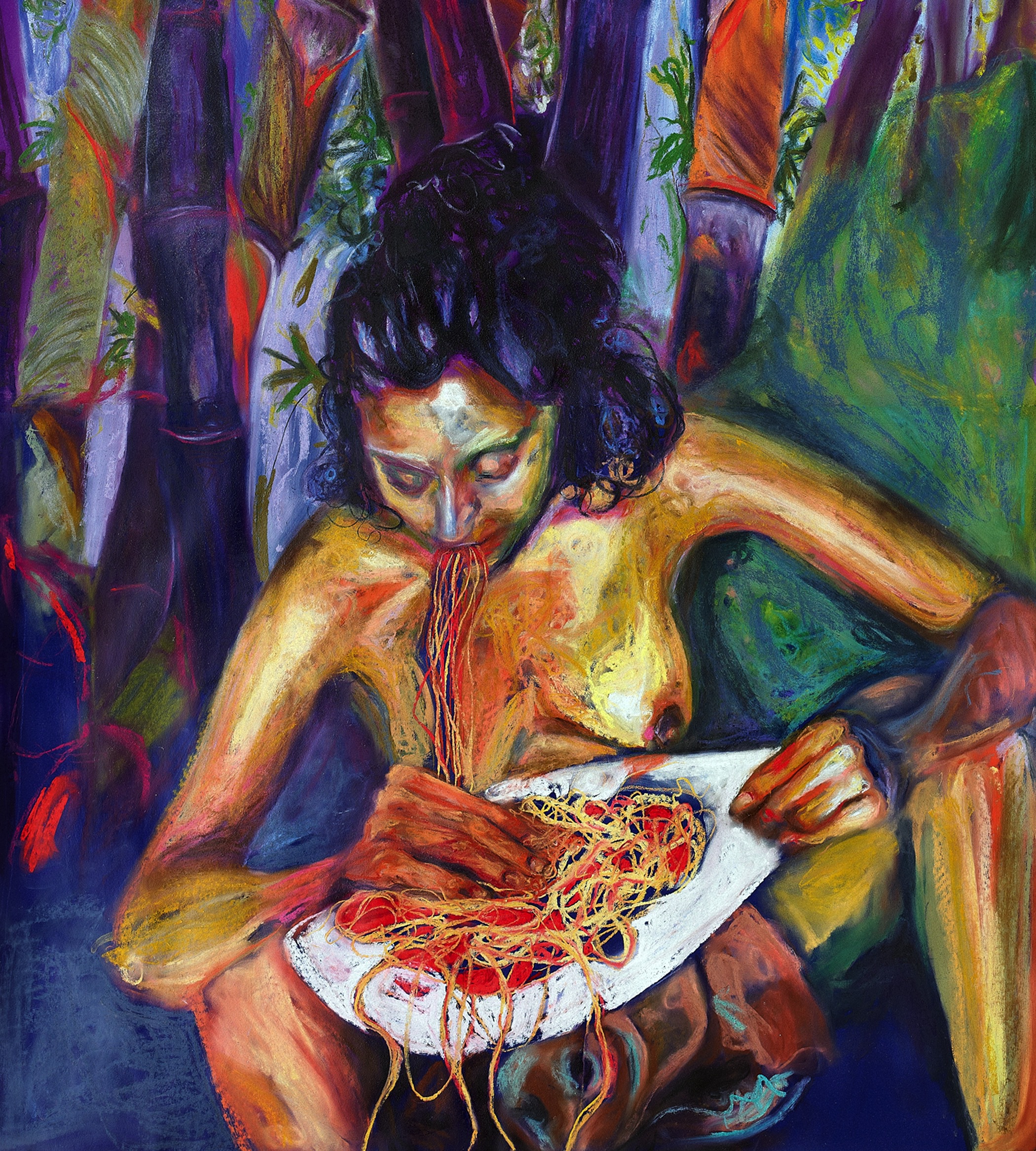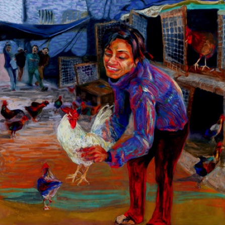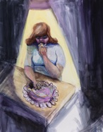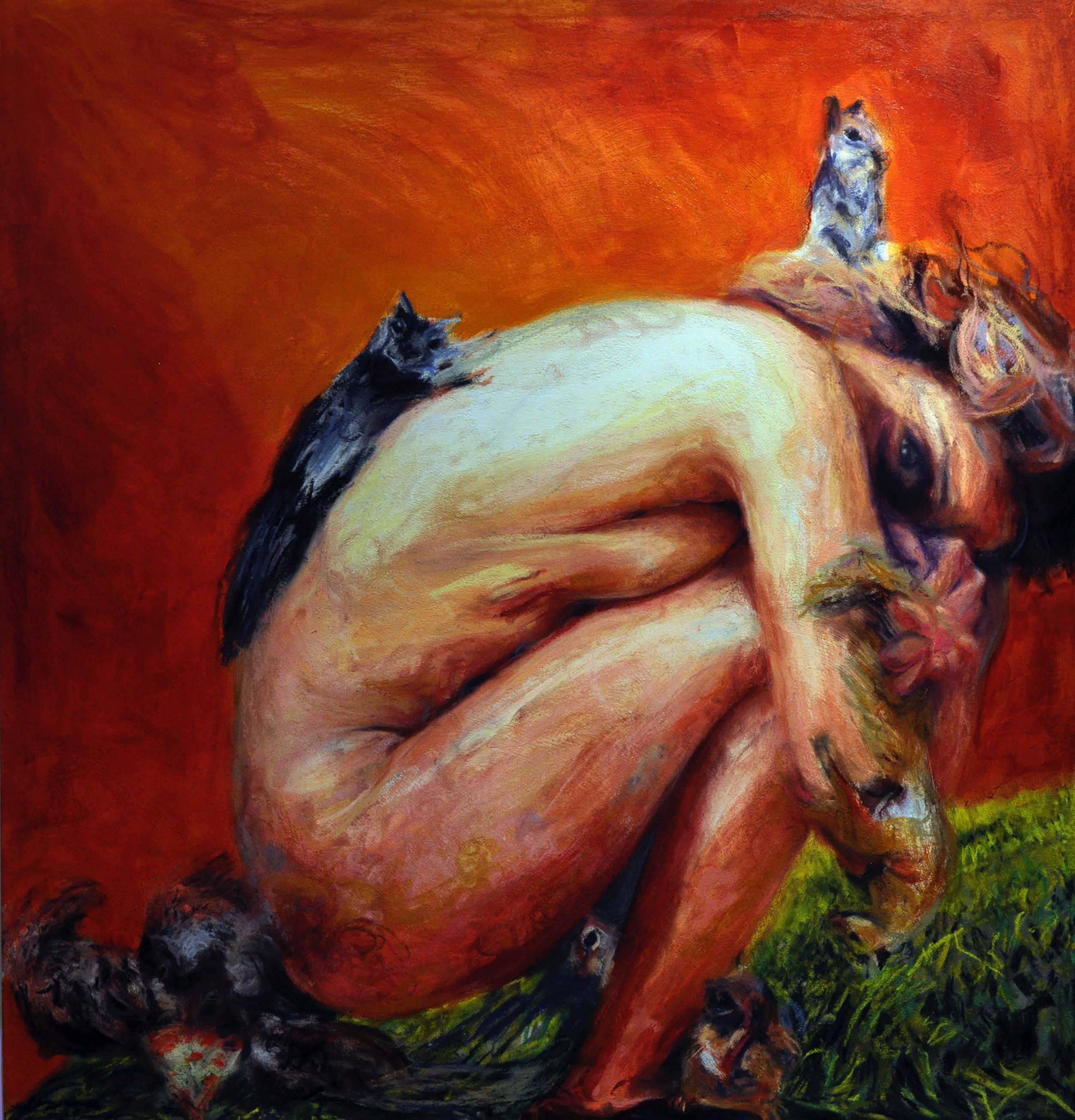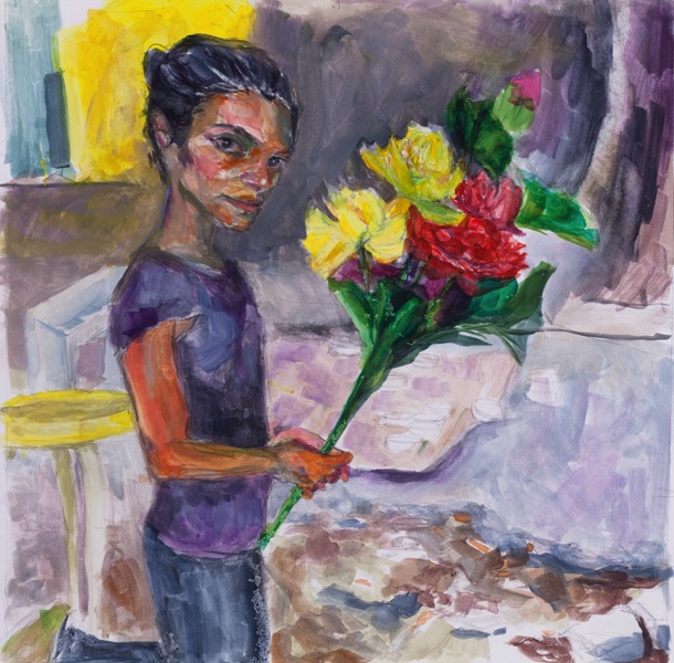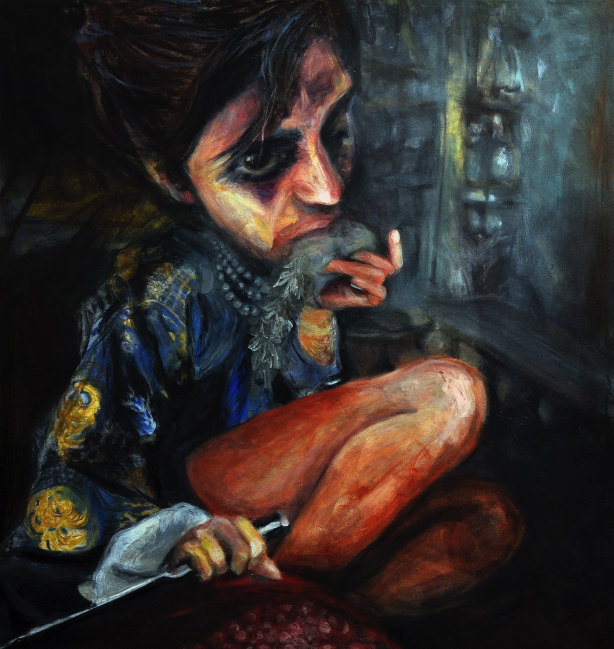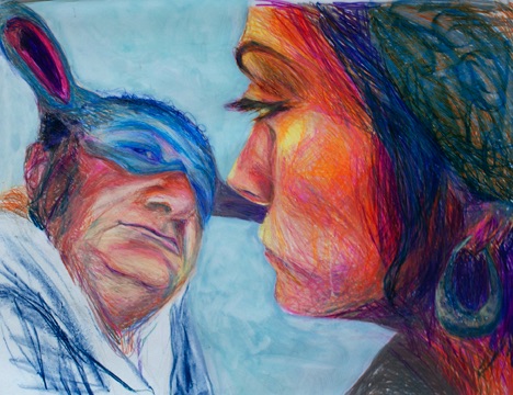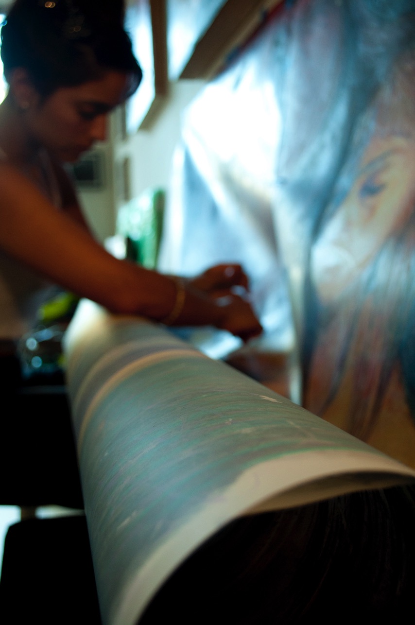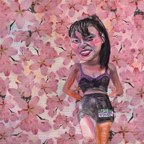 A portrait series dealing with street-harassment/catcalling. Women in my network sent me a photograph of themselves and their most “memorable” or “haunting” catcall (in whichever language it came to them in). I paint portraits of the women wearing a “Hello: My Name Is” tag, where the catcall replaces their name. 2013