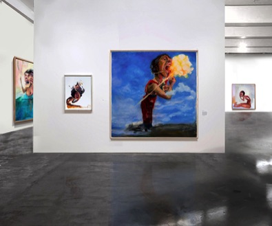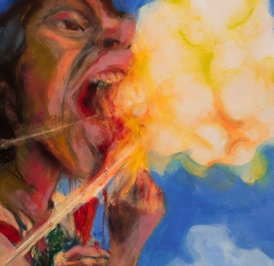 Lion devours Sun 51" X 51" Pastels, Acrylic, Canvas 2017